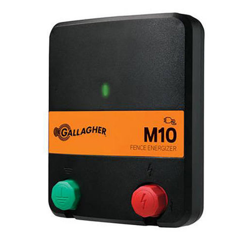 The Gallagher M10 AC Powered Fence Charger / Energizer powers up to 10 acres or 2 miles of clean fence. It has the energy of 0.1 stored joules and the M10 is great for small pastures, areas, and gardens.