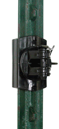 - Heavy-duty, snap-on plastic insulators for steel posts.